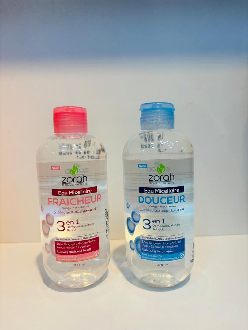 Découvrez l’EAU MICELLAIRE DOUCE NATURE ZORAH et vivez une expérience de nettoyage pure et fraîche. 🌿