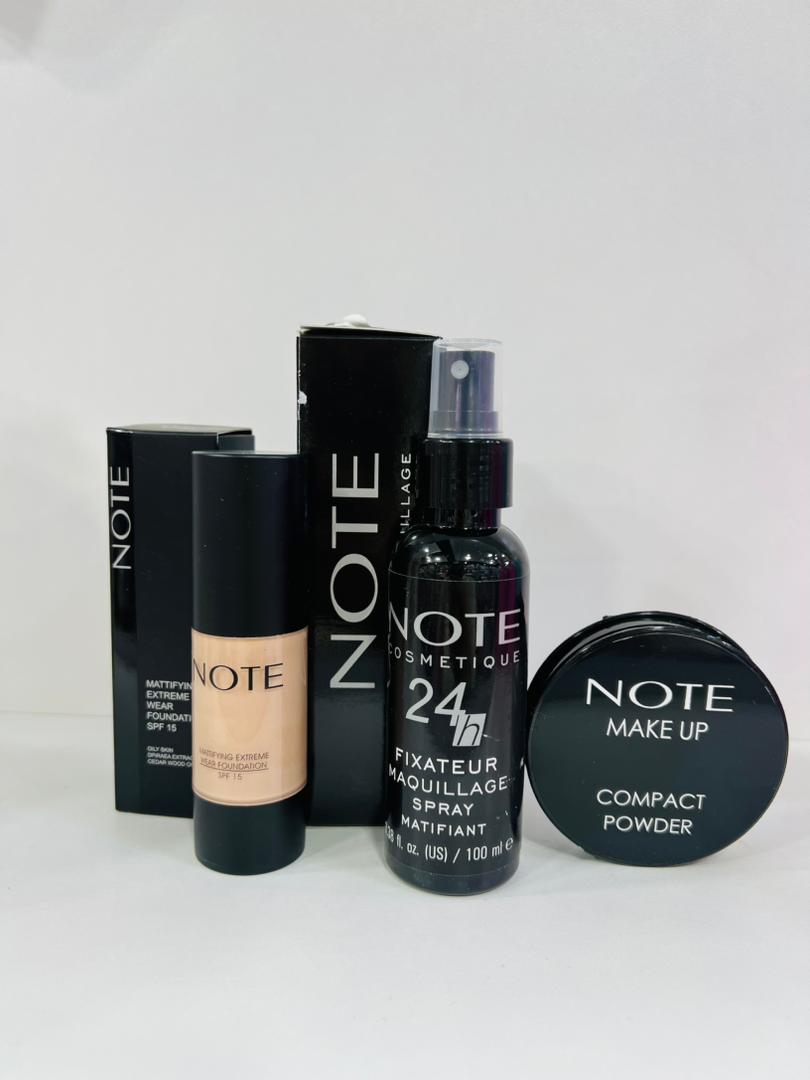💄 Pack Teint Complet NOTE – Fond de Teint Liquide + Poudre + Fixateur